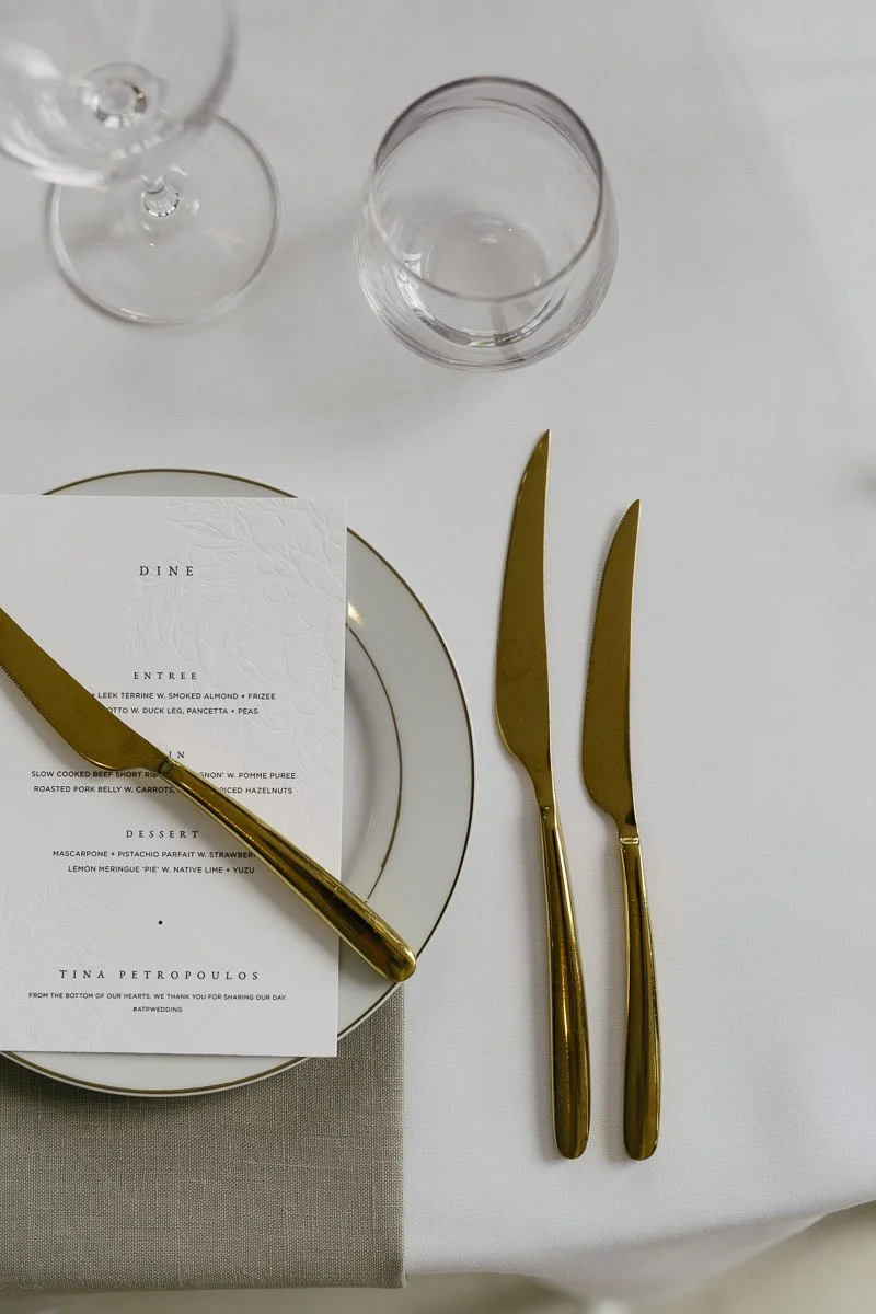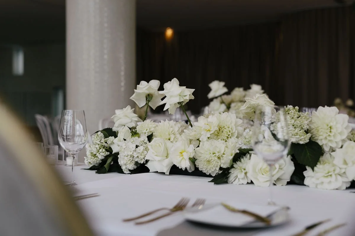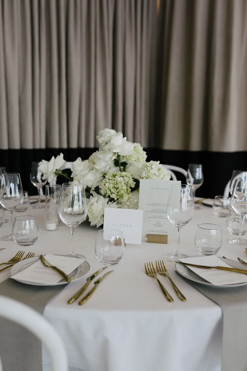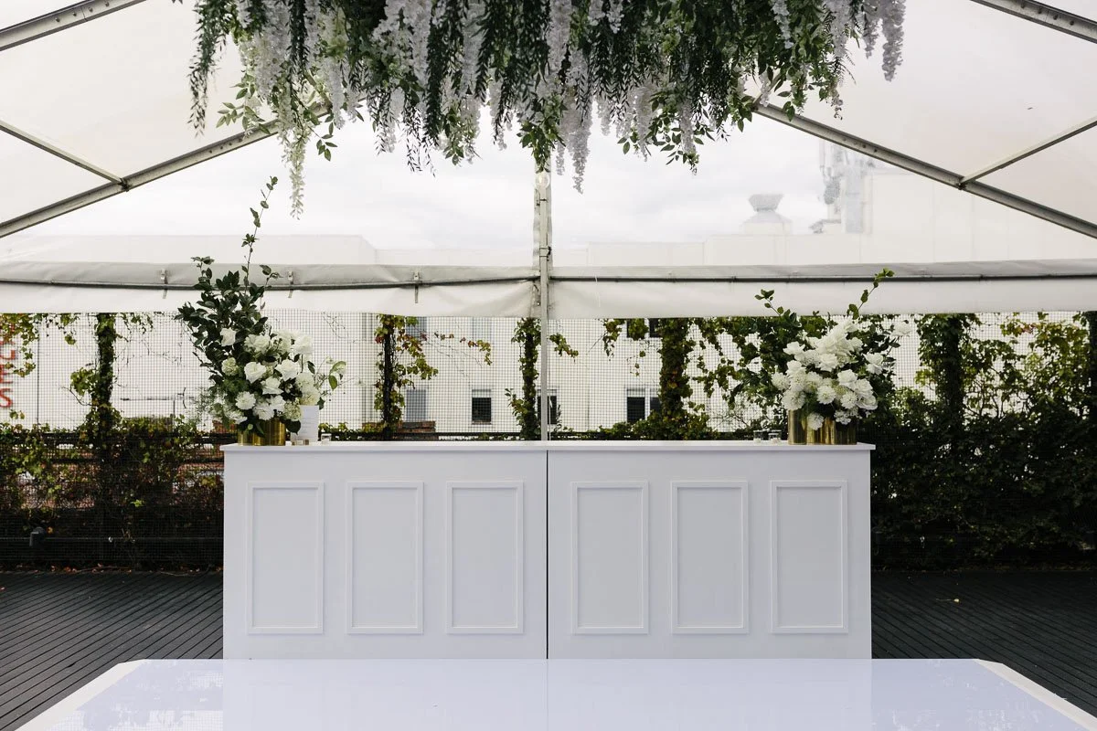 Classic whites and minty tones made the basis for Tracey and Alex's summer wedding. Held at the Prince Deck, the couple opted for an intimately styled outdoor space that got their guests out of their chairs and onto the dance floor. Tracey wore a custom-made Pallas Couture dress, which was offset by a classic red rose bouquet.
